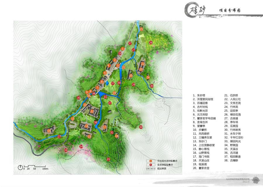 朱砂古村保护规划在内容、深度、方法上总结、借鉴以往历史城镇、村落保护规划的基础上,提出了“保护什么”、 “怎么保护”、 “完善设施”、“近期设施”等四个方面内容要点。作为一个历史文化名村的保护规划,与村庄的旅游发展内容一并考虑,统筹考虑保护与发展、保护规划编制与保护管理的协调关系,改善村民生产生活条件,增强保护规划的可操作实施性。