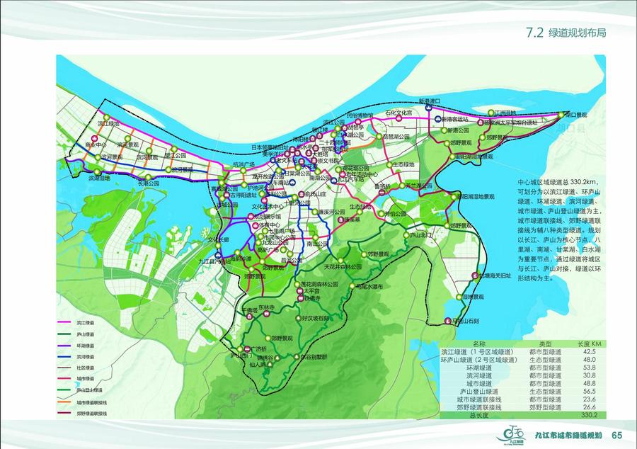 二、结合重要景观节点,规划注重生态效益中心城区域绿道在大的空间骨架上,结合重要公园、风景区节点内部进行展开,注重生态效益,合理利用资源。